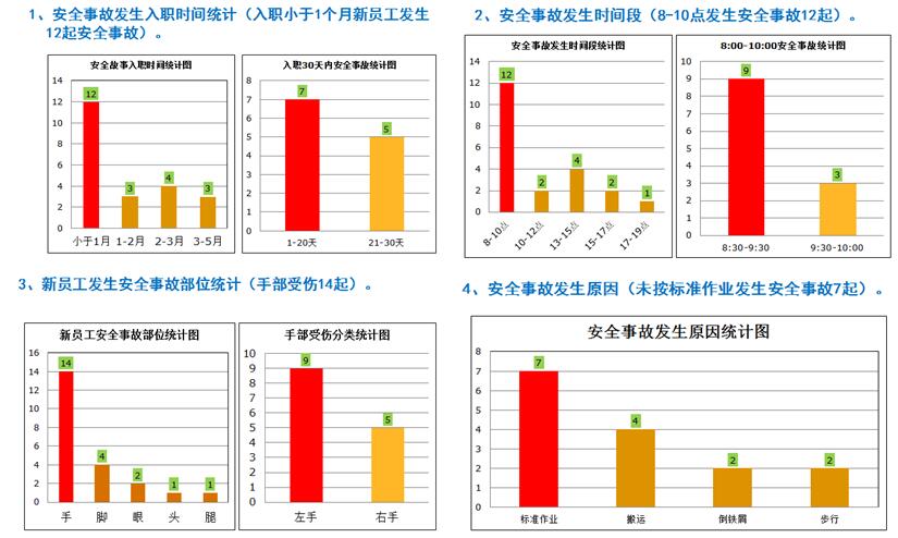 ? ? ? ?根據(jù)分析結(jié)果,事故的集中頻發(fā)時(shí)間、原因、人群凸顯出來(lái),安全事務(wù)局將立即針對(duì)分析結(jié)果進(jìn)行安全工作中的調(diào)整和改善,如: