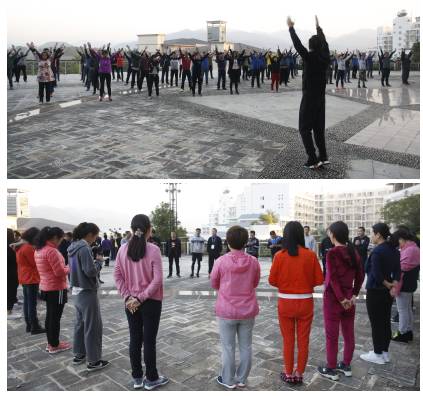? ? ? ?培訓(xùn)從7點(diǎn)的晨練開始,運(yùn)動(dòng)后,主持人教大家如何開嗓并教授發(fā)音技巧,好聽的聲音是提升演講力的重要武器。
